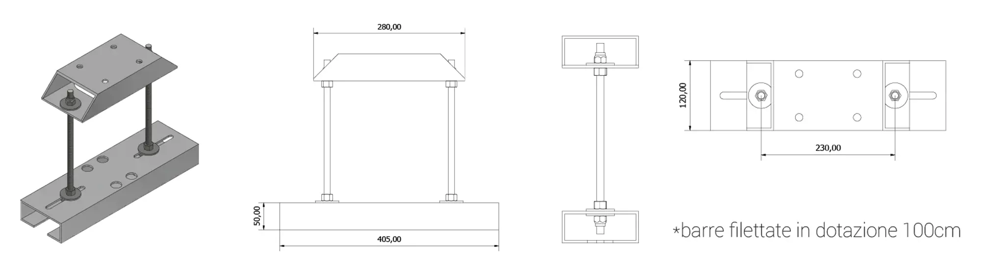 High ceiling mount brackets for the installation of Maximilian. Length supplied: 1000mm.