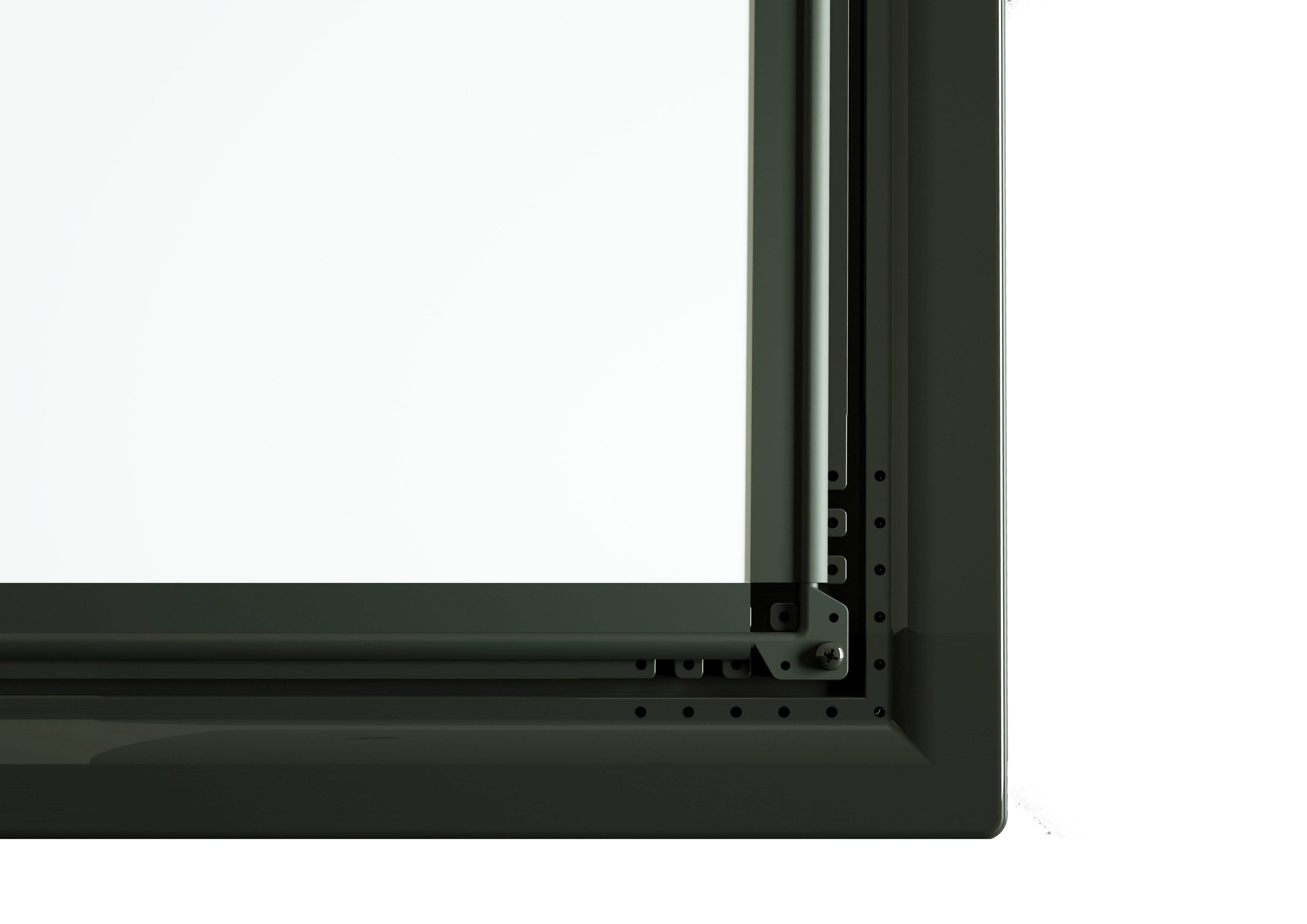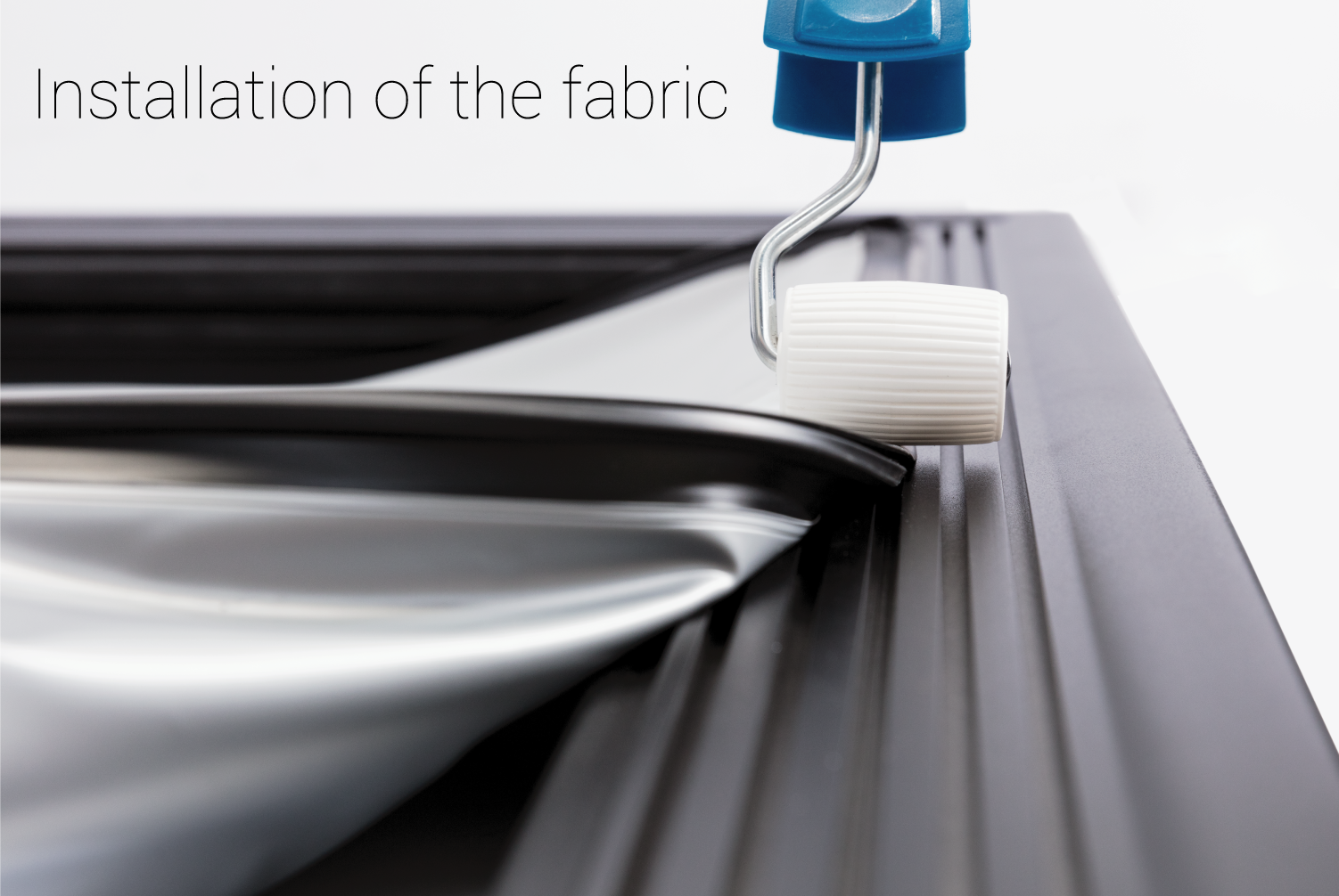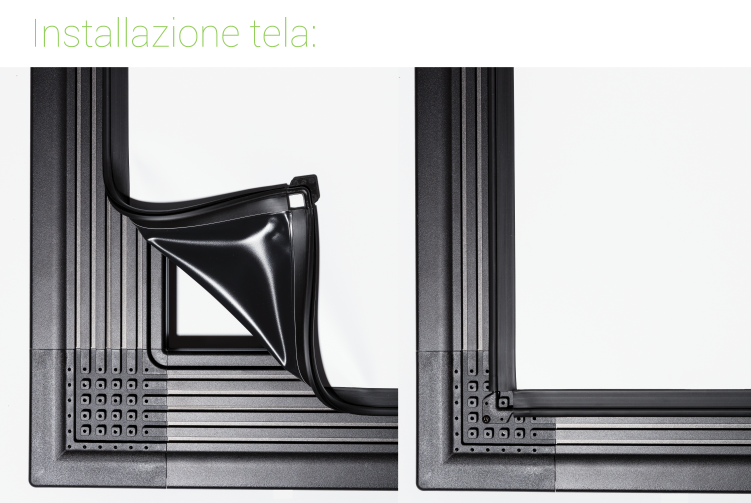 The new Arrow-edge frame allows for extremely fast assembly: the PVC screen is pressure-fitted into a dedicated groove, eliminating the time and complexity of traditional eyelet-based mounting. -