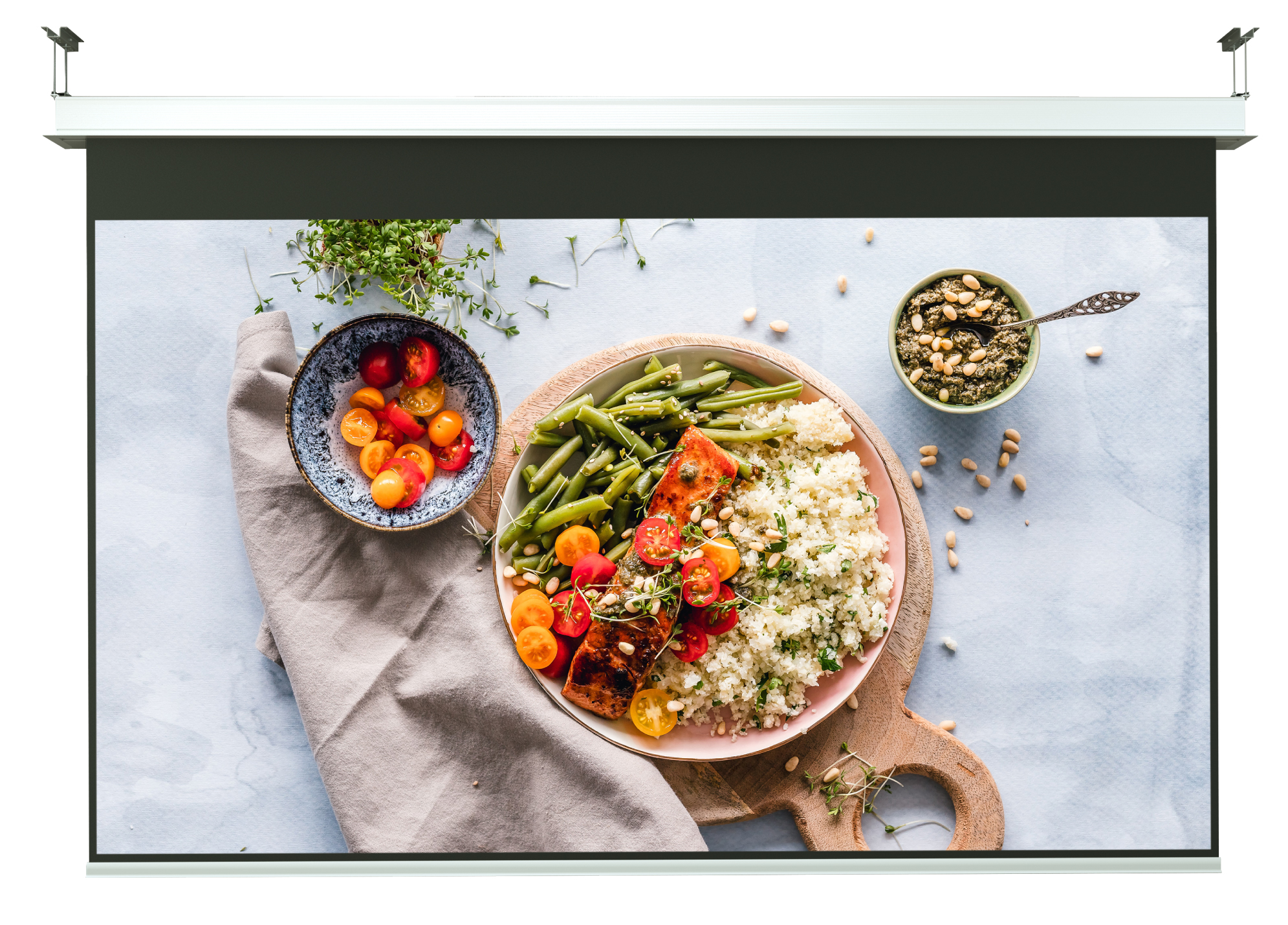 The perfect recessed screen for conference halls, auditoriums, theatres, and other large professional spaces. Designed for concealed ceiling installation, it combines high-level performance with architectural elegance, ensuring a discreet and seamless integration into any environment.