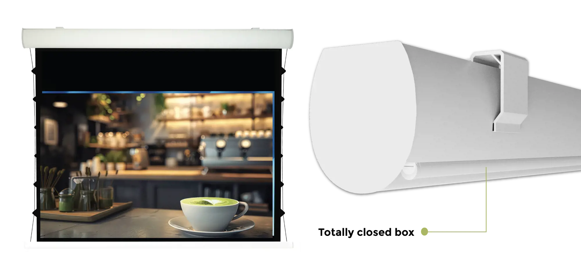 Thanks to its oval shape and reinforced structure, the Jago screen reaches a maximum width of 430 cm, delivering a powerful and immersive viewing experience.