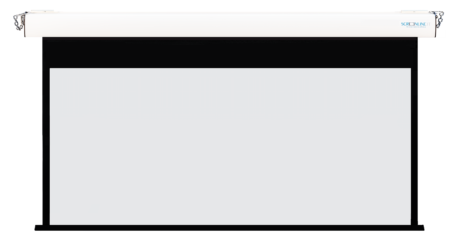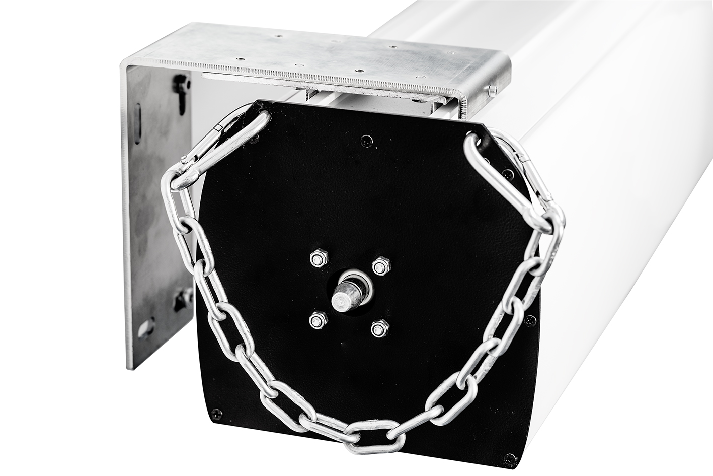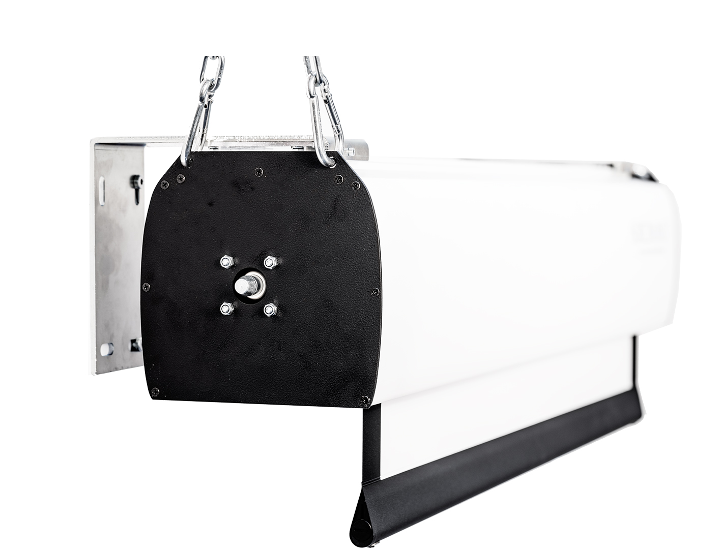 Thanks to its versatile mounting system, Lodo can be installed on either the wall or ceiling, with adjustable distance from the wall. Even after installation, the screen’s central position can be fine-tuned for perfect alignment. The lifting chains not only make positioning easier, but once anchored, they serve as an additional safety feature.
