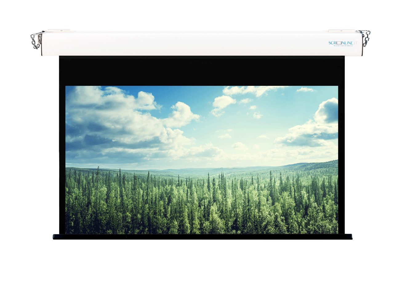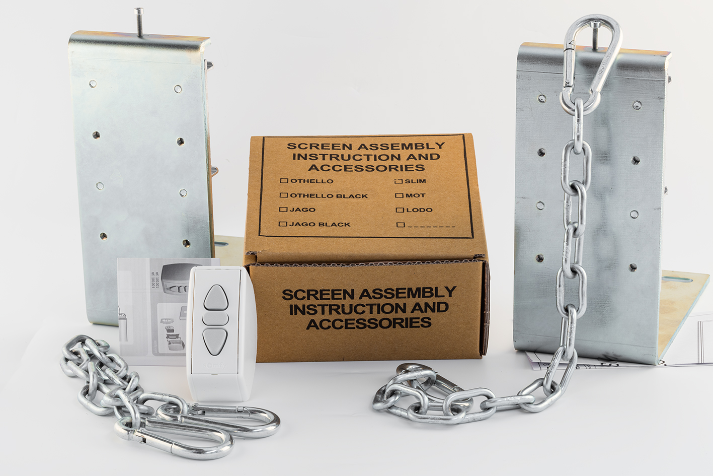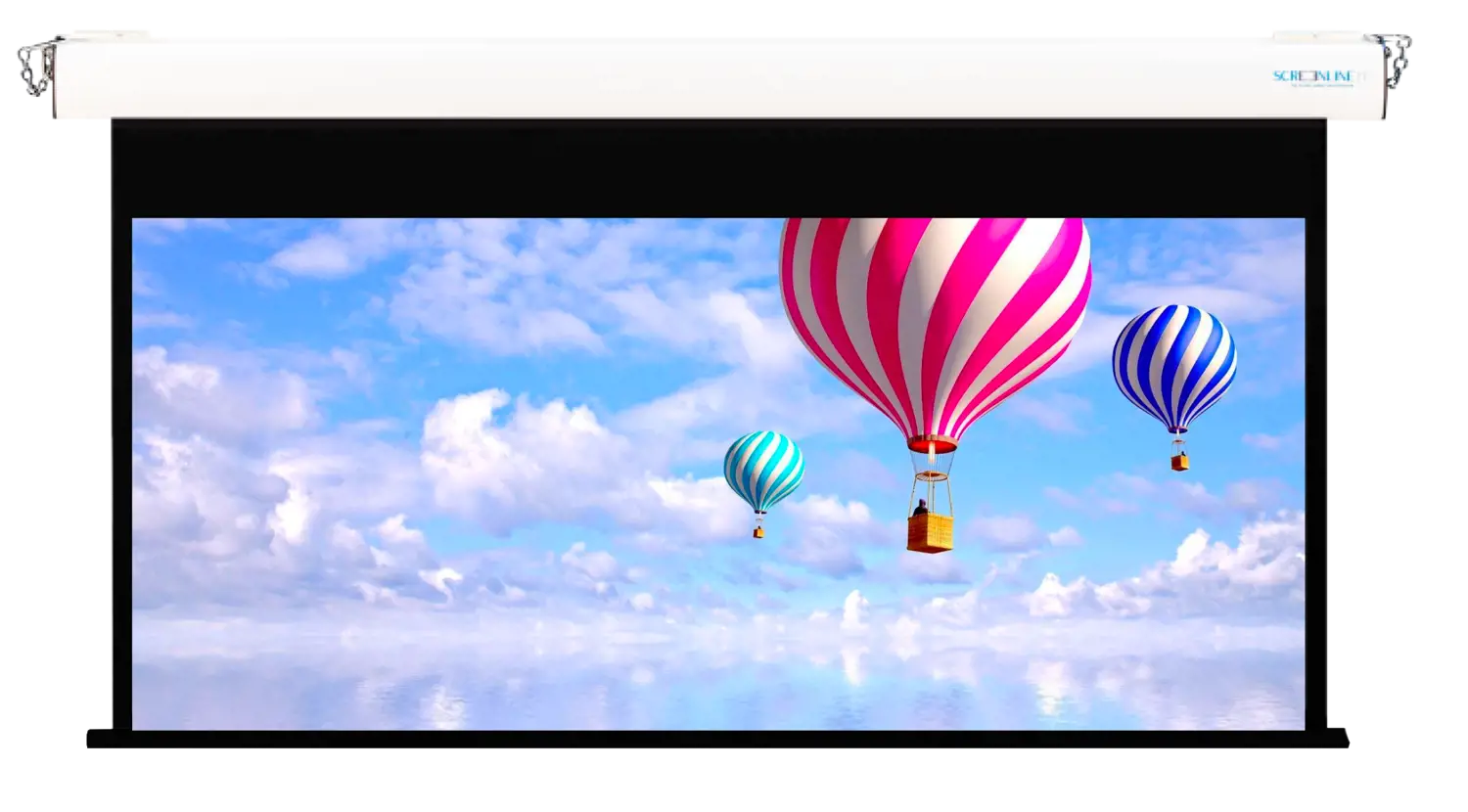 Thanks to its versatile mounting system, Lodo can be installed on either the wall or ceiling, with adjustable distance from the wall. Even after installation, the screen’s central position can be fine-tuned for perfect alignment. The lifting chains not only make positioning easier, but once anchored, they serve as an additional safety feature.