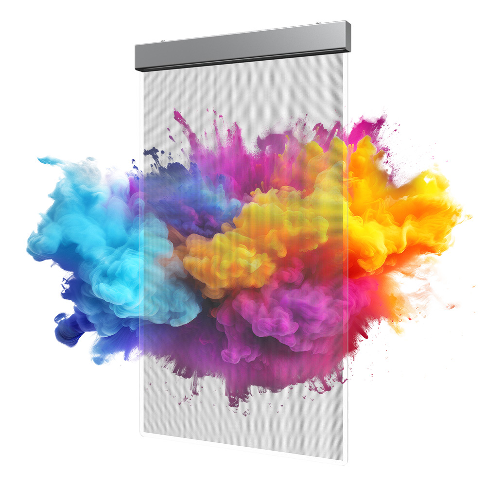 Questa tecnologia rivoluzionaria è pensata per applicazioni su vetrine retail e design architettonici di interni, unendo estetica trasparente e capacità di riproduzione video ad alta definizione.