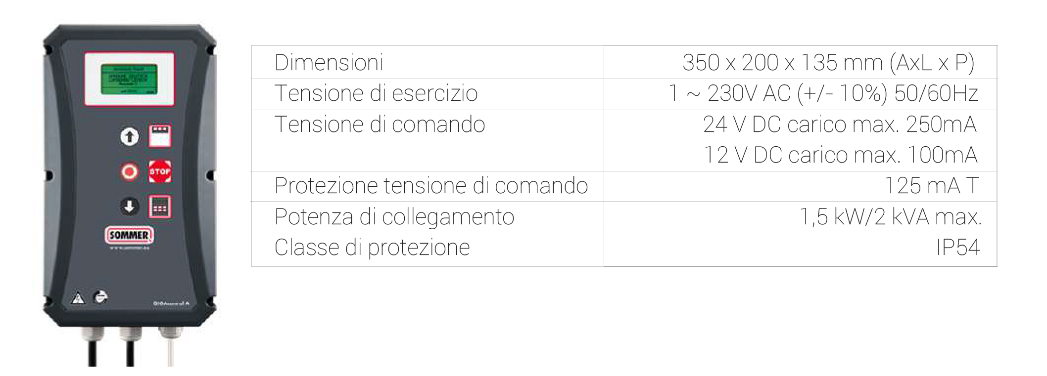 Operazioni standard: UP-DOWN-STOP. Su richiesta punto di fine corsa intermedio.