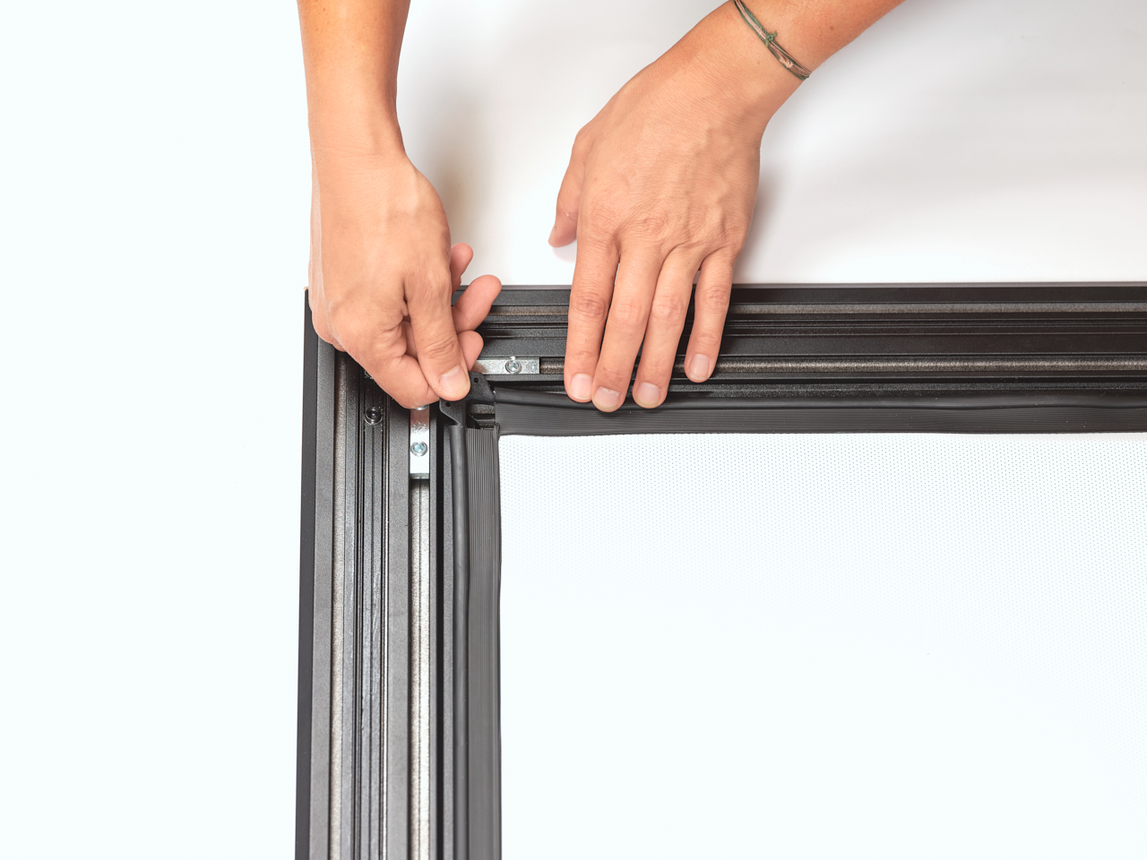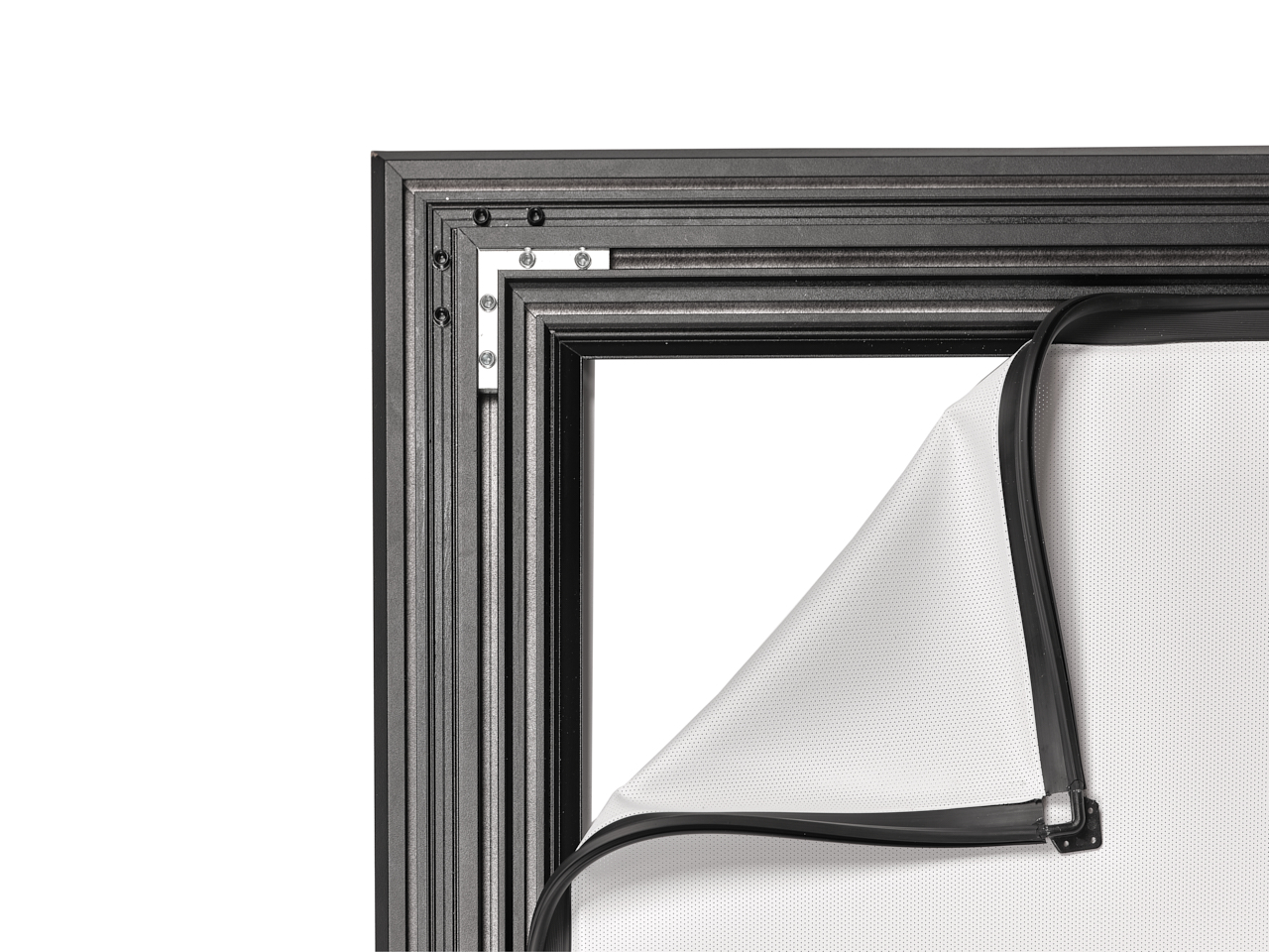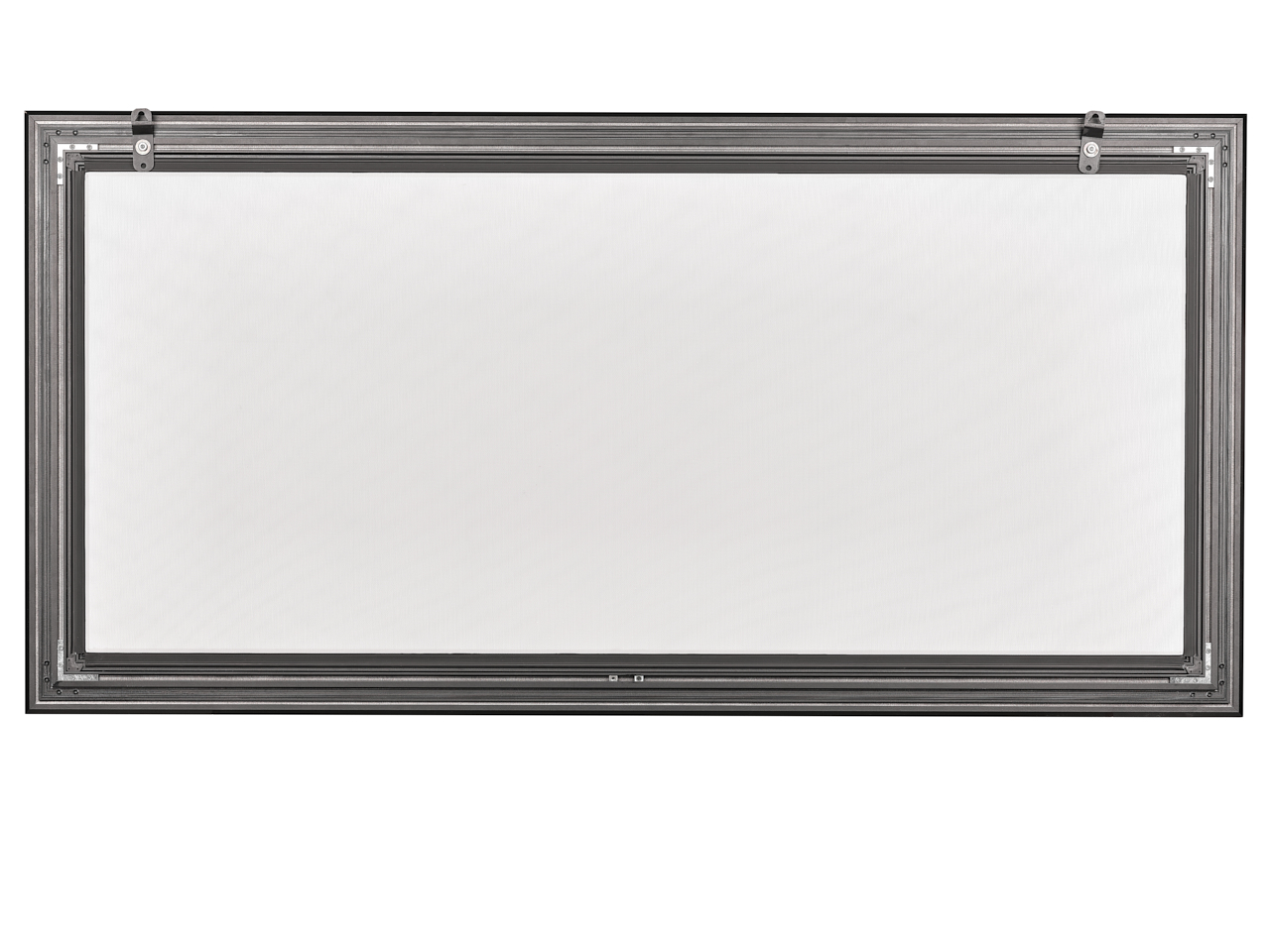 La tensione perfetta del telo, installato sul retro della cornice, garantisce una superficie di proiezione perfettamente planare, priva di ondulazioni.