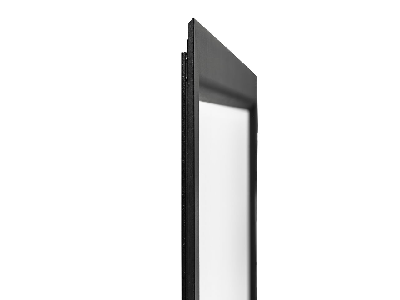 Il telaio in alluminio integra un profilo interno a 45°, progettato per riflettere correttamente la luce dei proiettori UST, assicurando una visione nitida e uniforme.