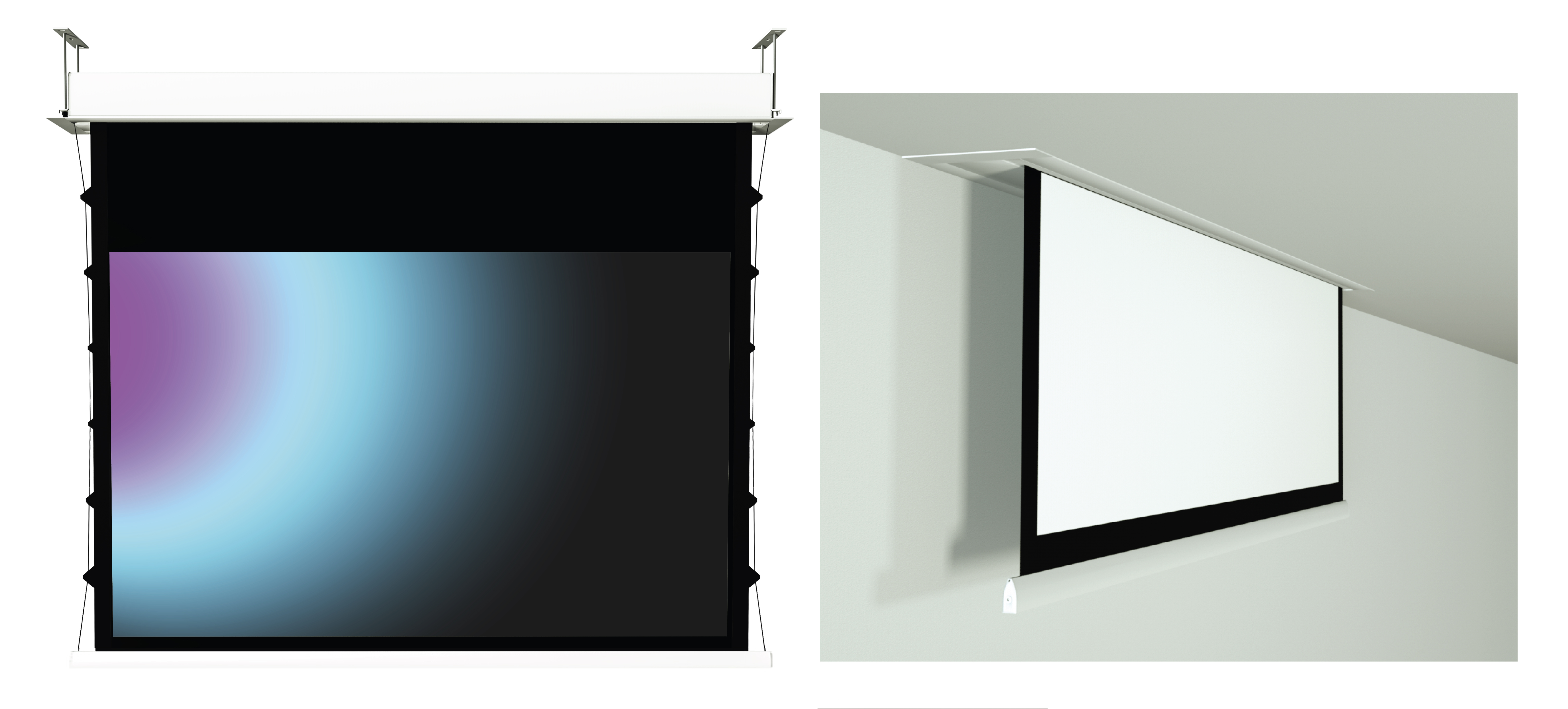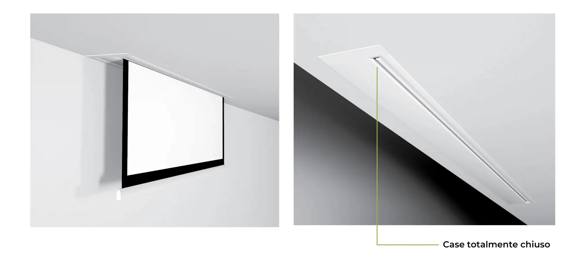 Soluzione elegante e discreta, ideale per sale riunioni, ambienti professionali e home cinema. Lo schermo si integra perfettamente nel controsoffitto, garantendo un impatto estetico minimo e massima funzionalità.