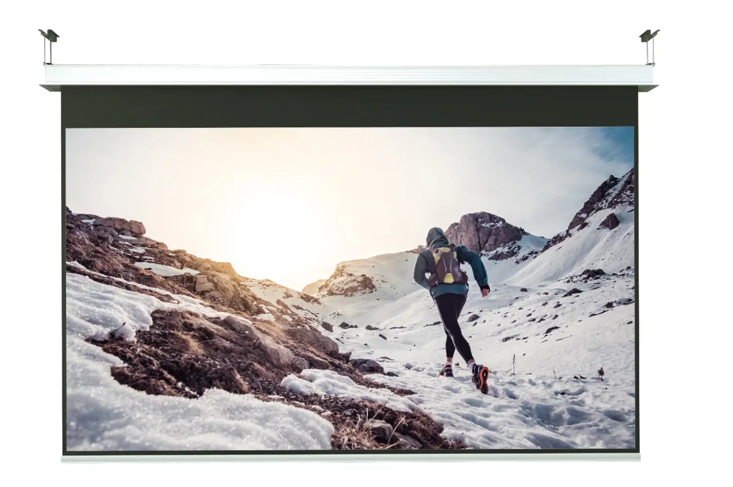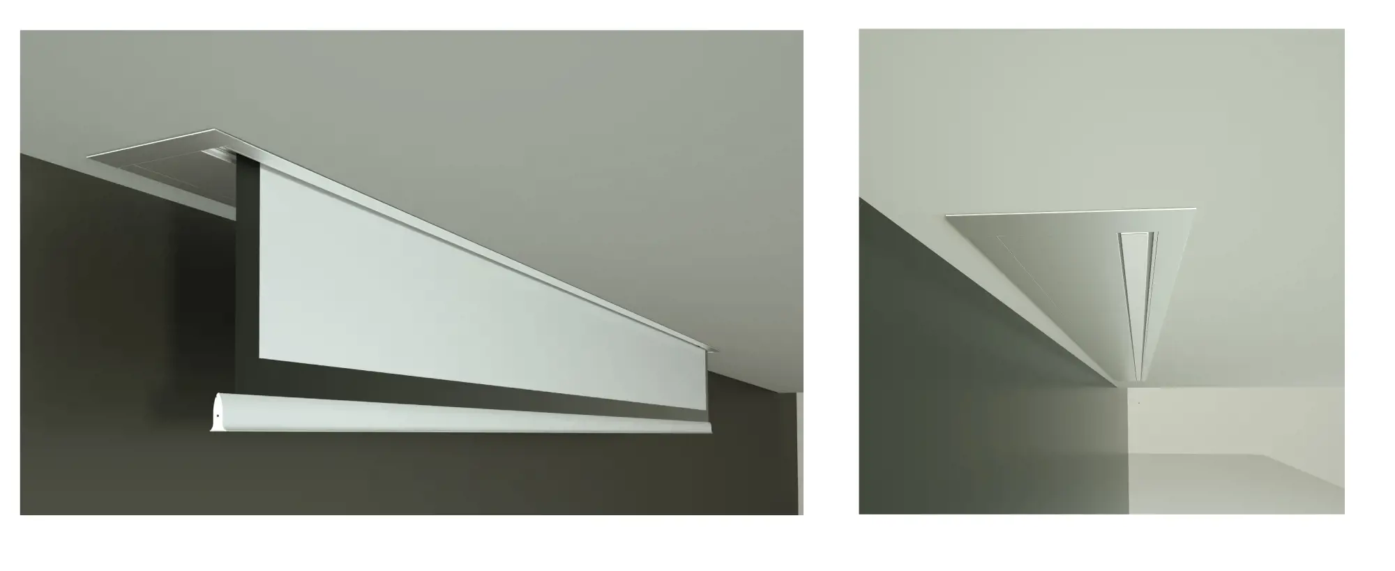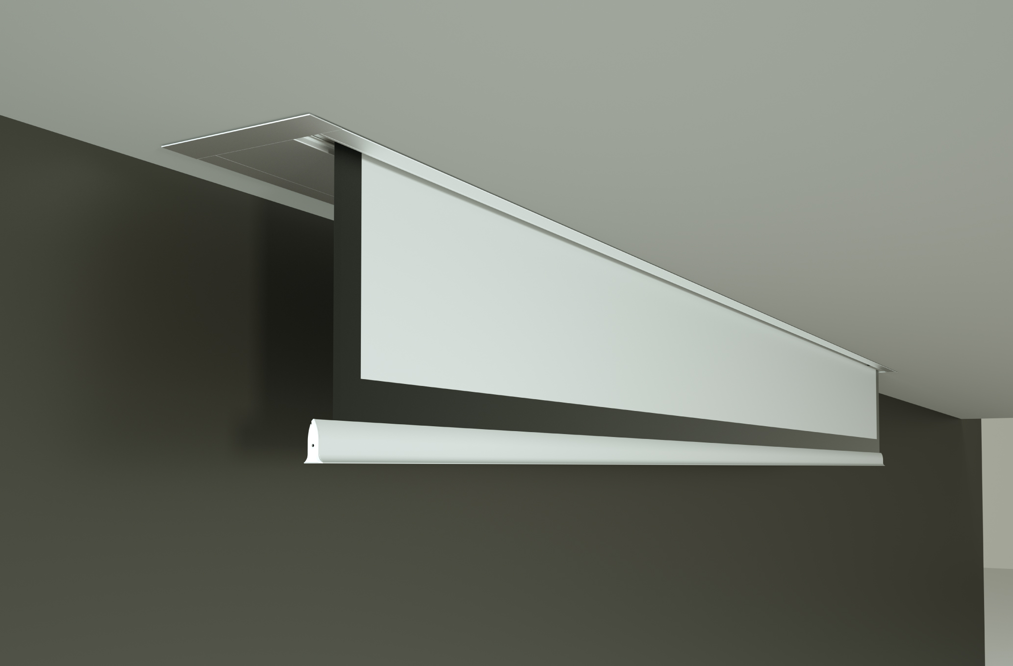 Schermo da incasso perfetto per sale conferenze, auditorium, teatri e grandi spazi professionali. Progettato per l’installazione a scomparsa nel controsoffitto, unisce prestazioni elevate ed eleganza architettonica, garantendo un’integrazione discreta in ogni ambiente.