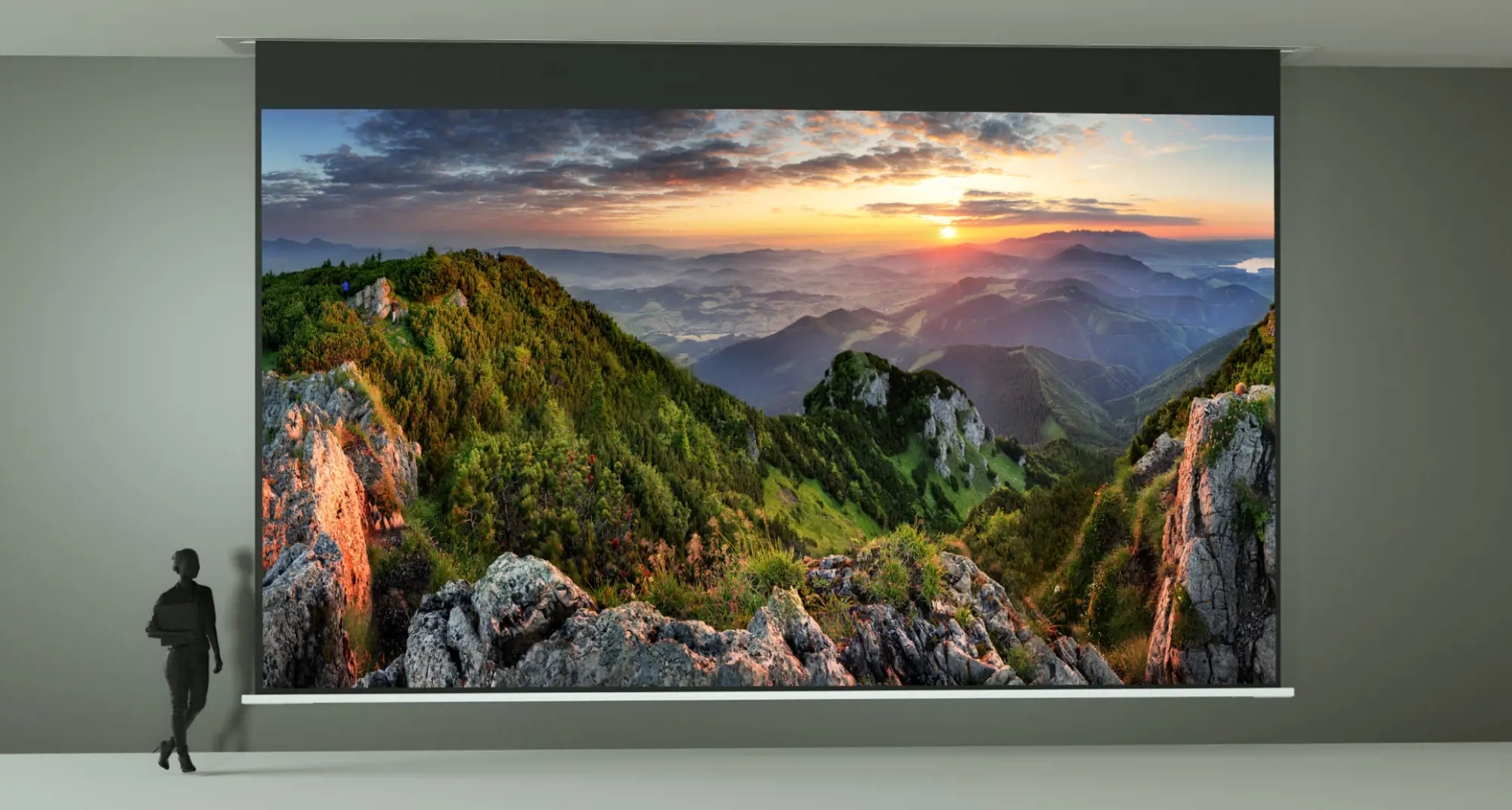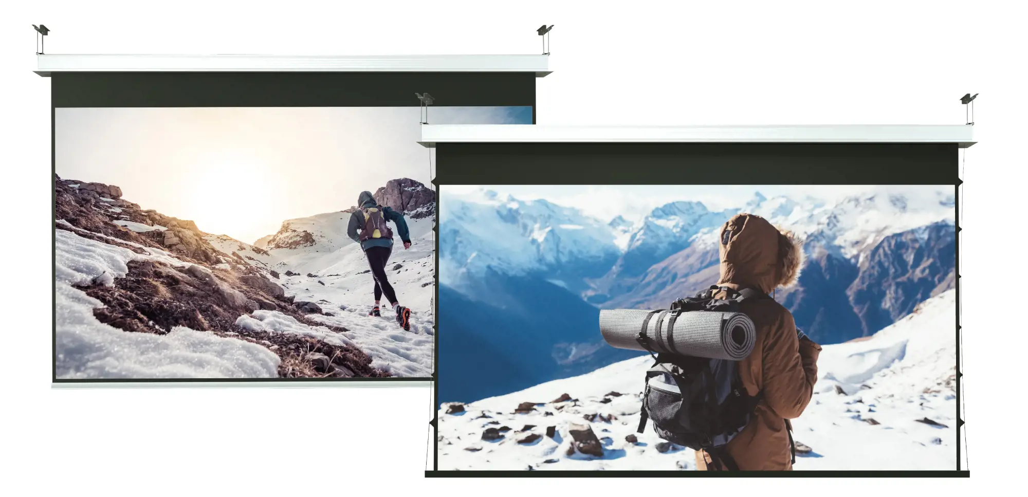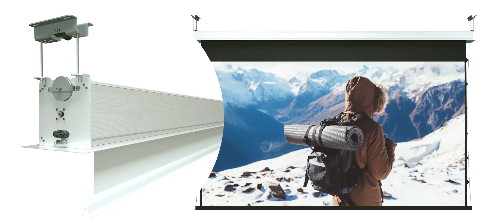 Schermo da incasso perfetto per sale conferenze, auditorium, teatri e grandi spazi professionali. Progettato per l’installazione a scomparsa nel controsoffitto, unisce prestazioni elevate ed eleganza architettonica, garantendo un’integrazione discreta in ogni ambiente.