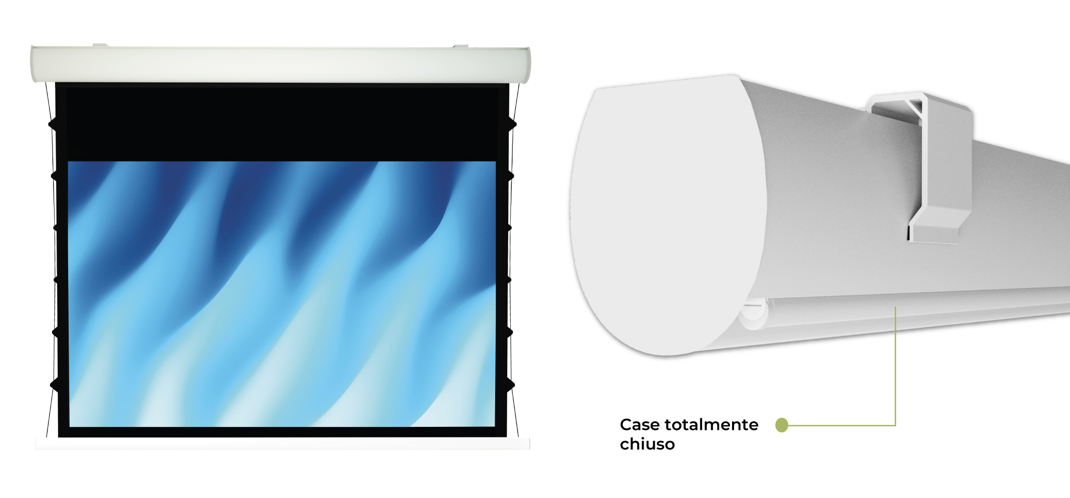 La linea Jago combina eleganza e prestazioni: puoi scegliere tra un'ampia gamma di tele ad alto contrasto o fonoassorbenti, ideali per creare un ambiente cinematografico perfetto anche a casa.