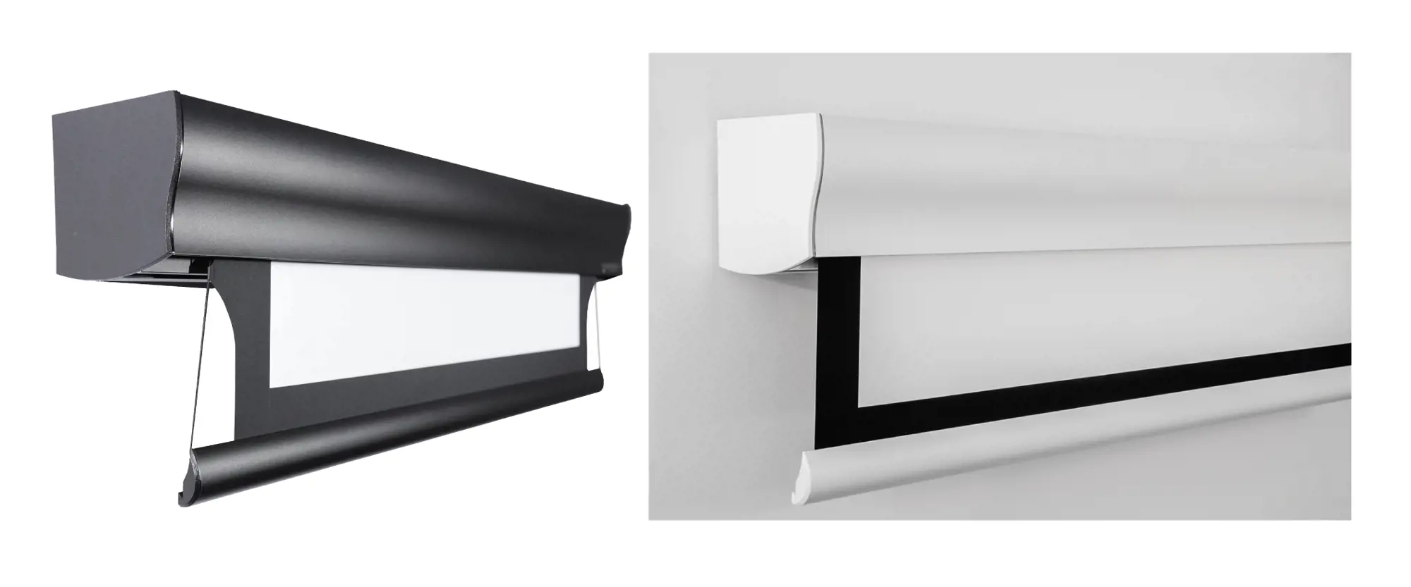 Wave è molto più di uno schermo motorizzato: è un elemento d’arredo che unisce estetica e funzionalità. Con un design elegante e minimale, si integra con discrezione in qualsiasi ambiente, grazie al suo cassonetto sagomato pensato per installazioni a filo muro o in angolo.