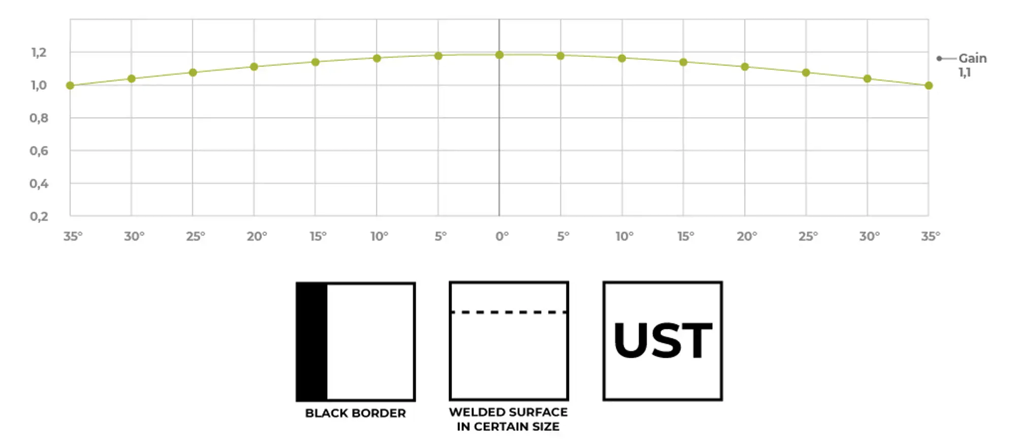 Tela in PVC ignifugo da alte prestazioni ottiche e meccaniche di colore bianco neve. La superficie è finemente goffrata ed assicura una perfetta omogeneità di visione anche ad altissima definizione. Il range di visione è di 150°, senza perdite di contrasto od alterazione dei colori. Lo spessore di 0,40 mm assicura una perfetta planarità anche su schermi ad avvolgimento motorizzato di grandissime dimensioni. Il guadagno nominale indicato di 1.1 è ideale per la perfetta riproduzione senza spot luminosi di immagini generate da proiettori business o home cinema sia di bassa che di altissima luminosità. Grazie alle tecnologie innovative utilizzate da ScreenLine la tela Bianco Ice può essere saldata in modo invisibile per ottenere schermi di dimensioni fino ed oltre i 12 metri di base. Il retro della tela è anch’esso bianco e pertanto il suo utilizzo ideale non prevede luci parassite o finestre nell’immediato retro schermo.