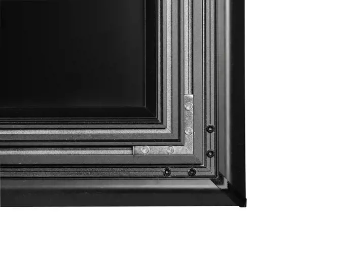 Realizzato in alluminio estruso di alta qualità, è disponibile in formati da 200 a 600 cm di base e presenta una cornice ultra-sottile nero opaco da soli 5 mm.