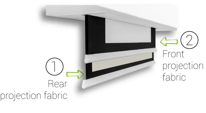 - Con una coppia di tele contrapposte si potrà proiettare sui due lati, oppure su una tela frontale e una retroproiettabile.