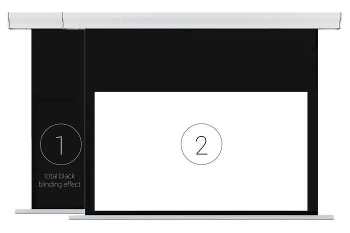 Oscuramento e proiezione: installato davanti a una finestra, può ospitare una tela oscurante e una tela da proiezione, garantendo visibilità ottimale in ogni condizione di luce.